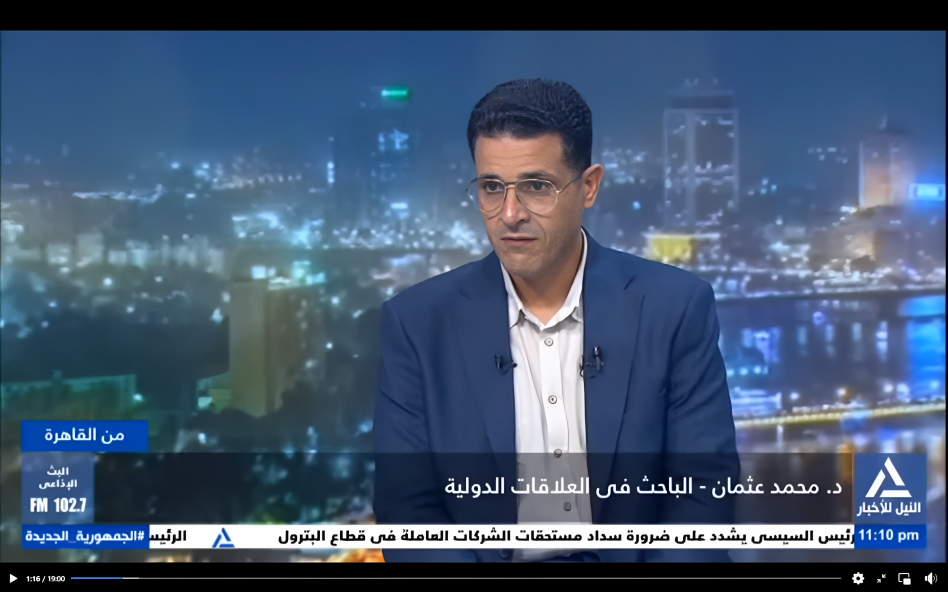 لقائي مساء يوم 7 سبتمبر 2025 علي شاشة النيل للأخبار وقراءة لرد الفعل الإسرائيلي علي موجة الاعتراف الدولي، لاسيما الأوروبي بدولة فلسطين