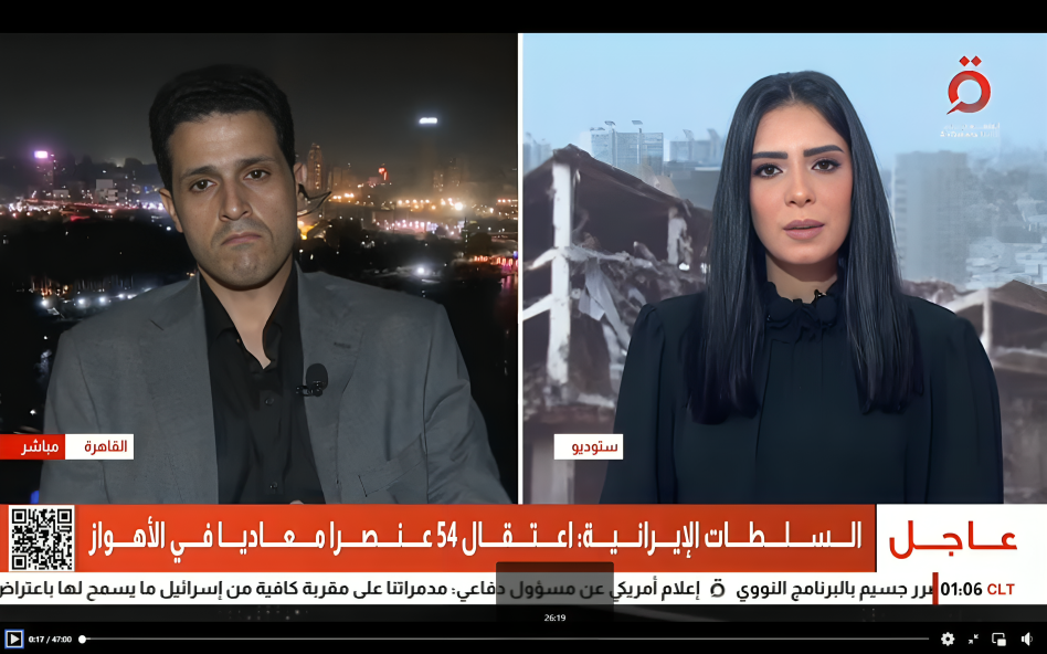 مداخلتي فجر يوم 21 يونيه 2025 علي شاشة القاهرة الإخبارية للحديث عن الحرب الإسرائيلية علي إيران وأفق التسوية السياسية في ضوء مفاوضات جنيف وتصريحات الرئيس الترامب والتصعيد الميداني المستمر